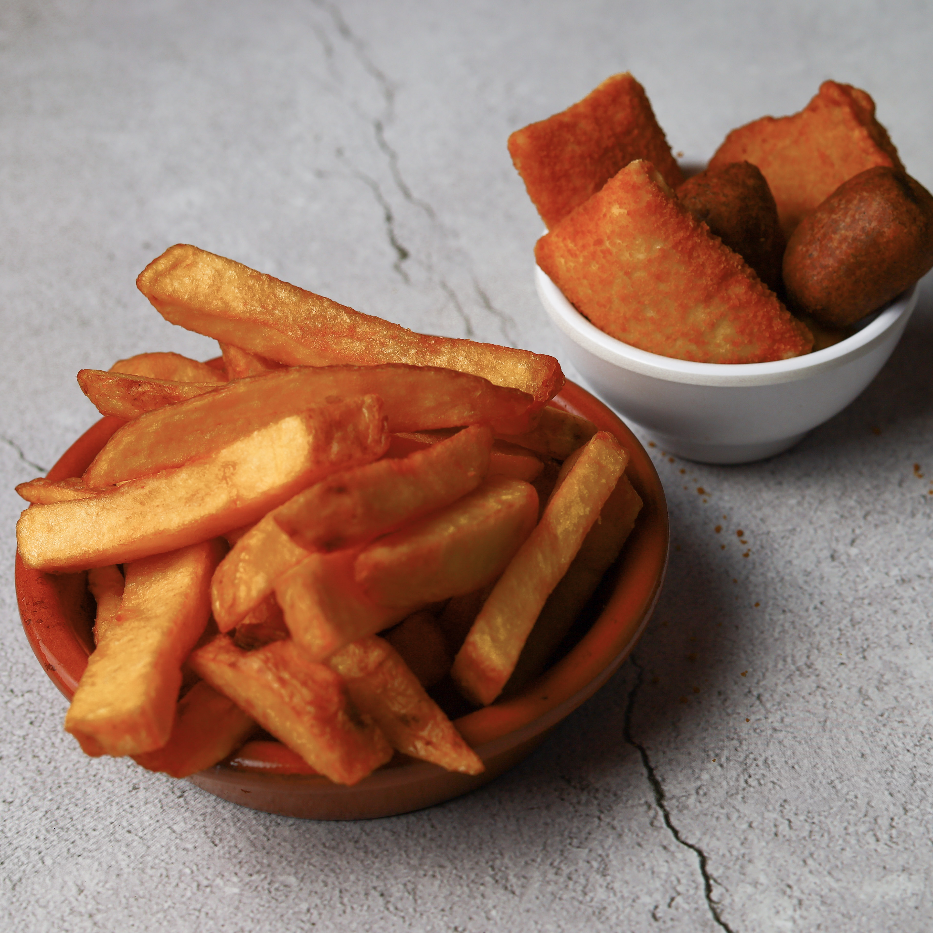 Al onze afhaalgerechten worden geserveerd met friet en salade.